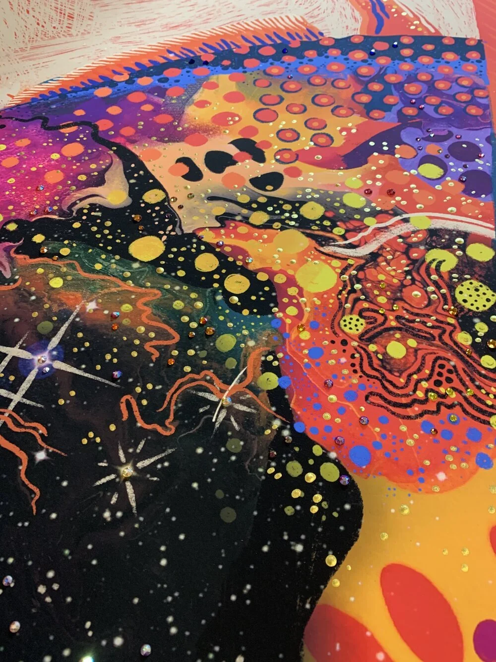 Crystal finish - hand-applied gold leaf, gold paint and Swarovski crystals (only available in 85cm x 85cm size)